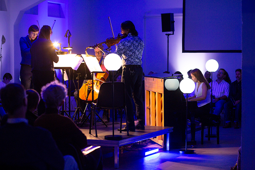De uitvoering is in handen van een bezetting van strijkkwartet, piano en vrouwenstem. Daarbij worden live geluidsmanipulatie en effecten ingezet om een dynamische en ruimtelijke ervaring te creëren. Het gevoel van onderdompeling wordt versterkt door een 3D speakersetup rondom het publiek en het speciaal voor deze voorstelling gemaakte lichtontwerp.